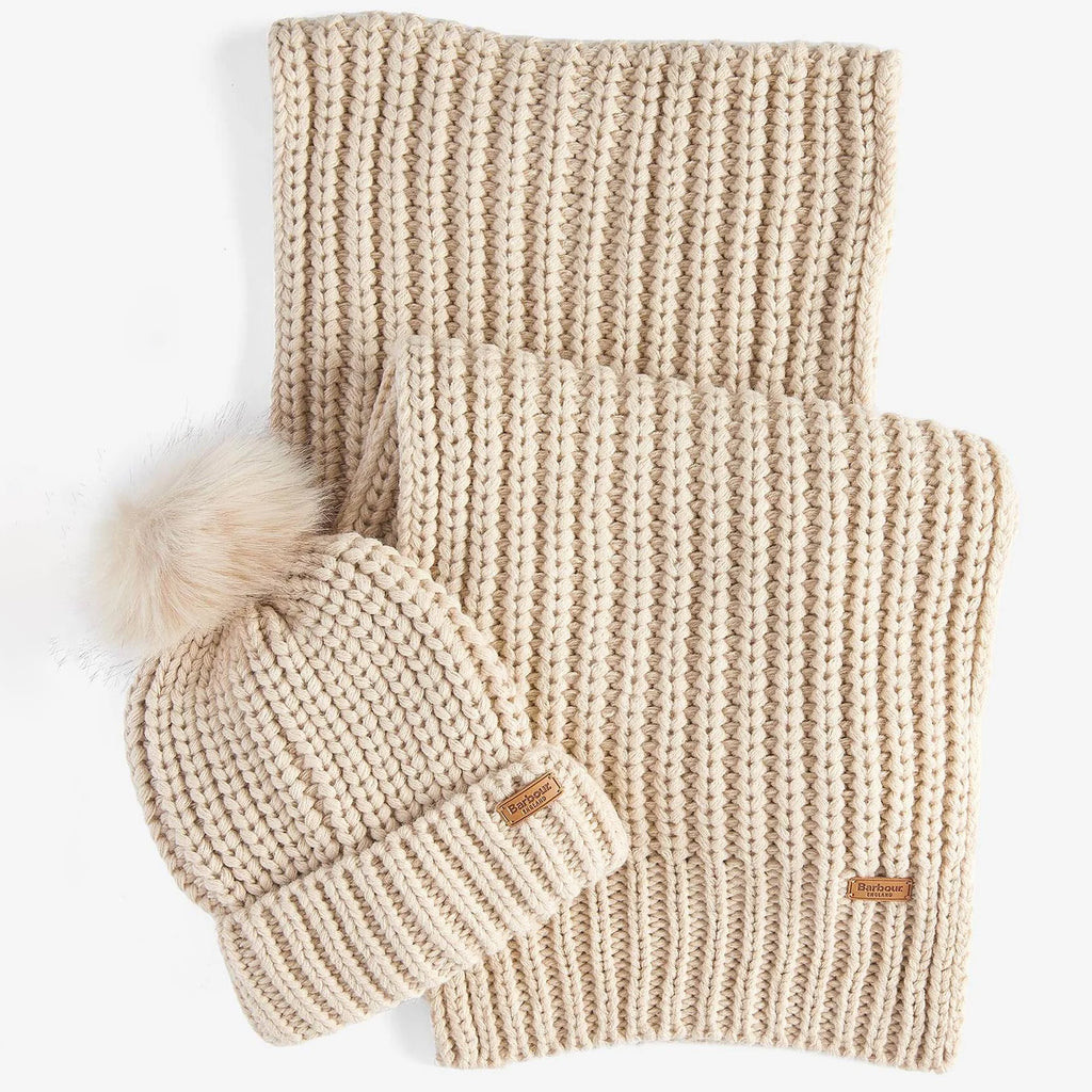Barbour Women's Saltburn Beanie Hat and Scarf Gift Set in Pearl