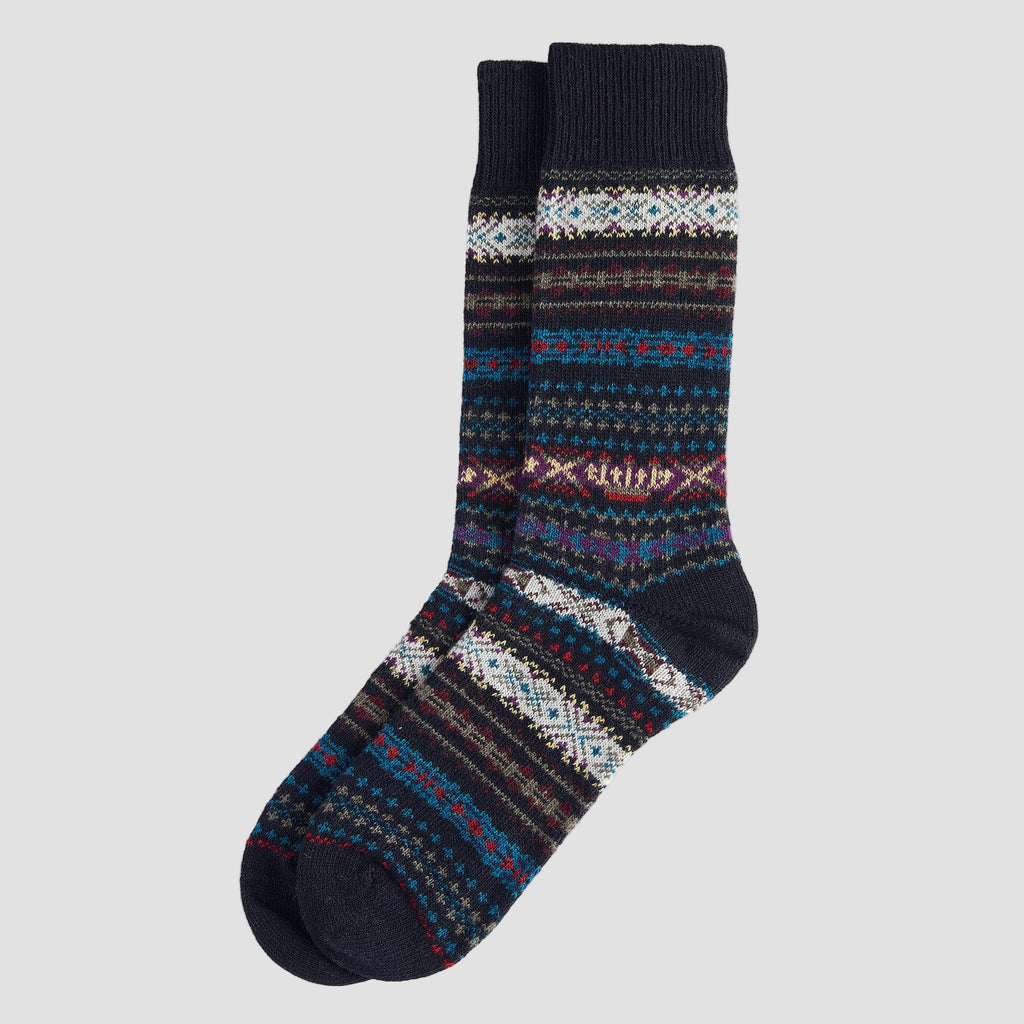 Previous NextThe Boyd socks are traditional Fair Isle knitted lambswool socks, featuring a heat-sealed Barbour logo on the sole.