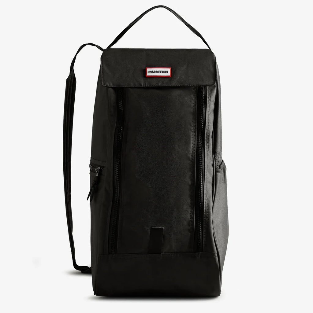 Previous NextA large-sized boot bag crafted from a durable polyester shell. Designed to carry tall Hunter boots, the travel boot bag features a wide double zip opening, an exterior slip pocket and mesh panel. A practical design, a top handle and adjustable shoulder strap allow it to be easily carried.
